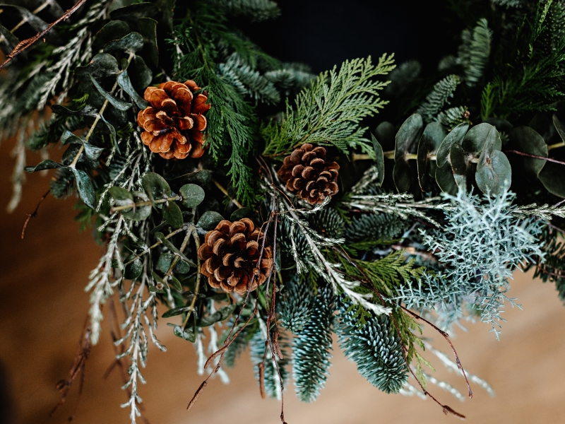 Decorate your door in Scandi style this winter with our classic 'Cones' Door Wreath! Designed with all the festive foliage, such as Blue Spruce, cupressus, Eucalyptus, and Grevillea. Your wreath is then finished off with a scatter of cones and ribbon, and arrives ready for you to hang on your door.